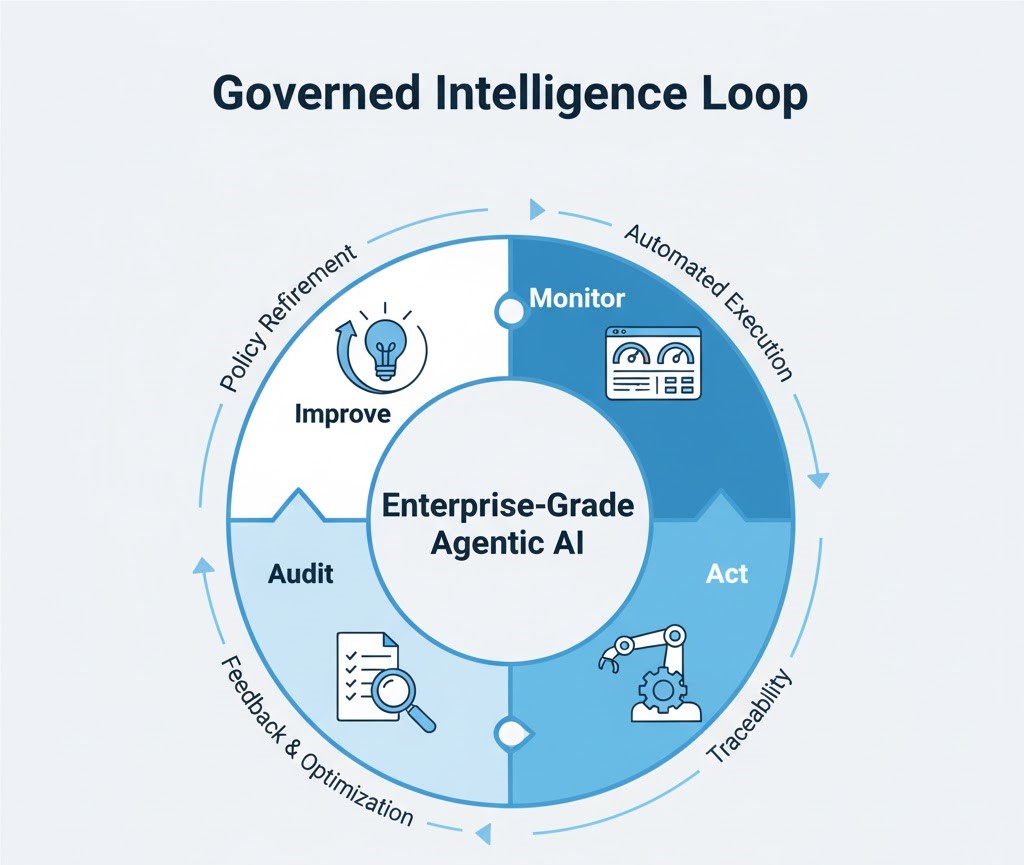 This model-govern-act feedback loop is how enterprise-grade Agentic AI scales safely.