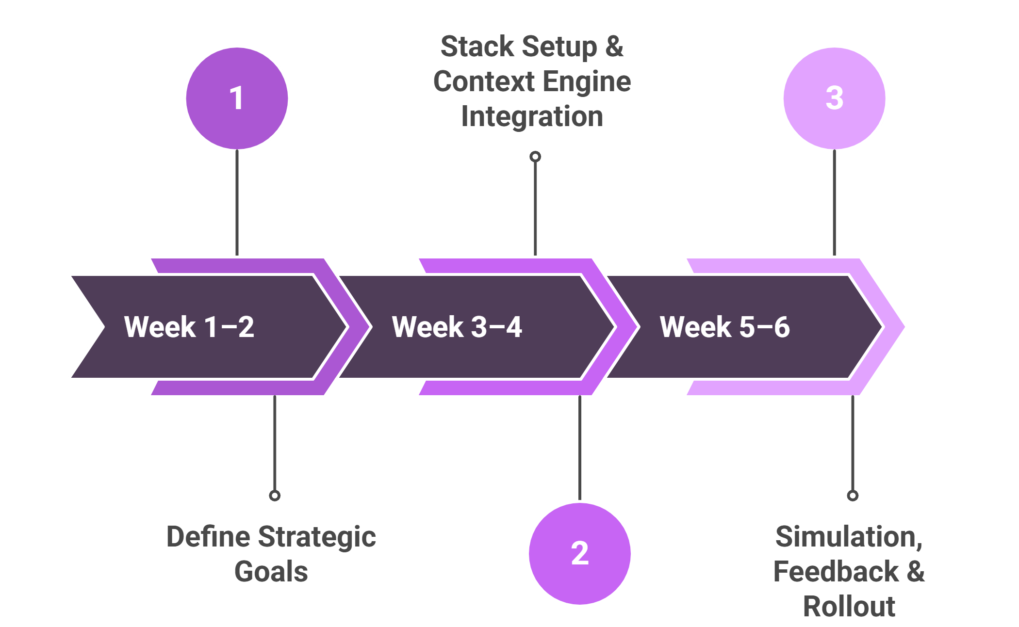 The final two weeks are dedicated to live simulations, feedback loops, and phased go-live across user groups. Metrics like response time, fallback rates, and action success are tracked in real time.